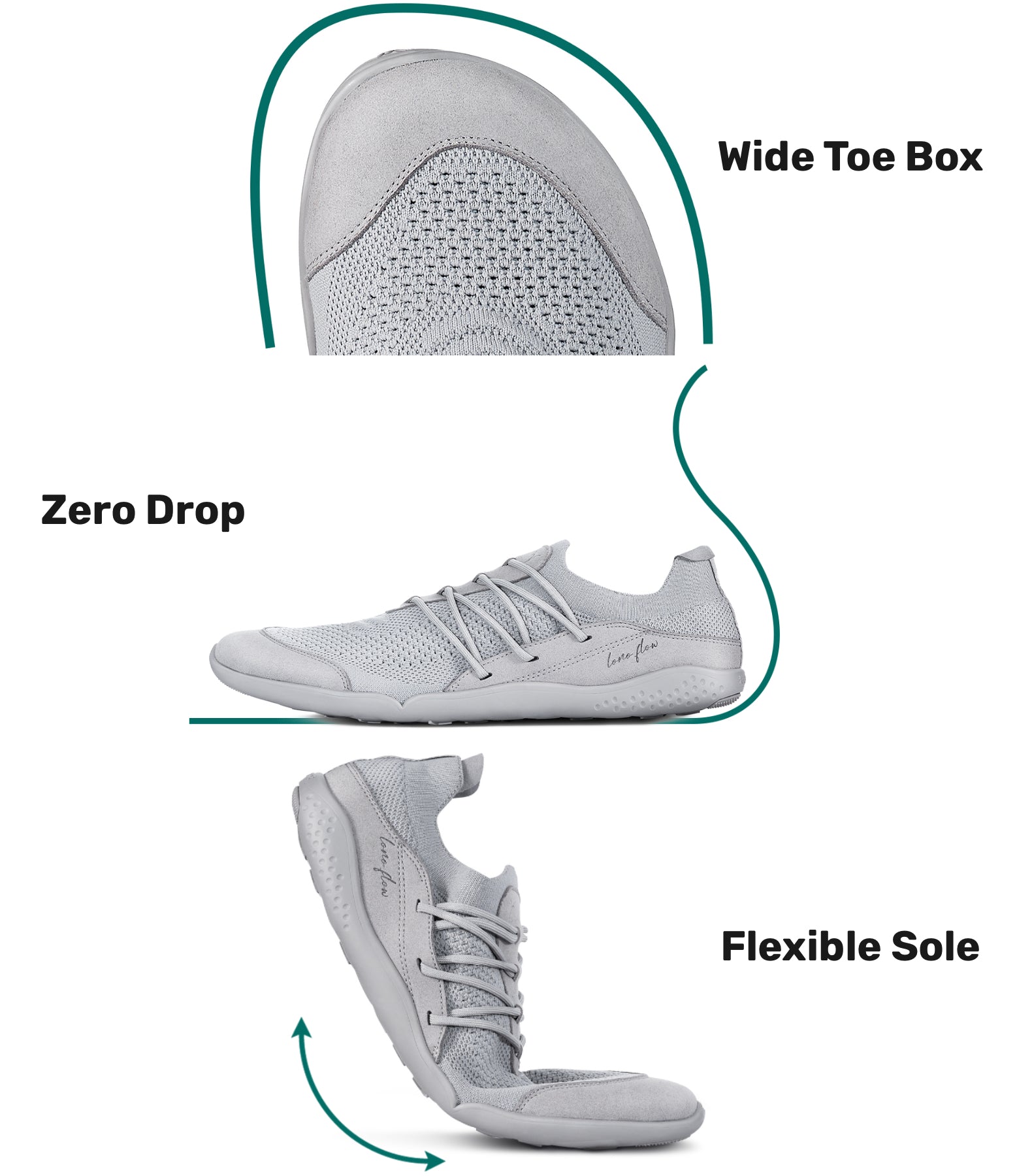 Excellent wide-foot fit, naturally less heel striking rather Samurai stride moving legs and feet forward.
