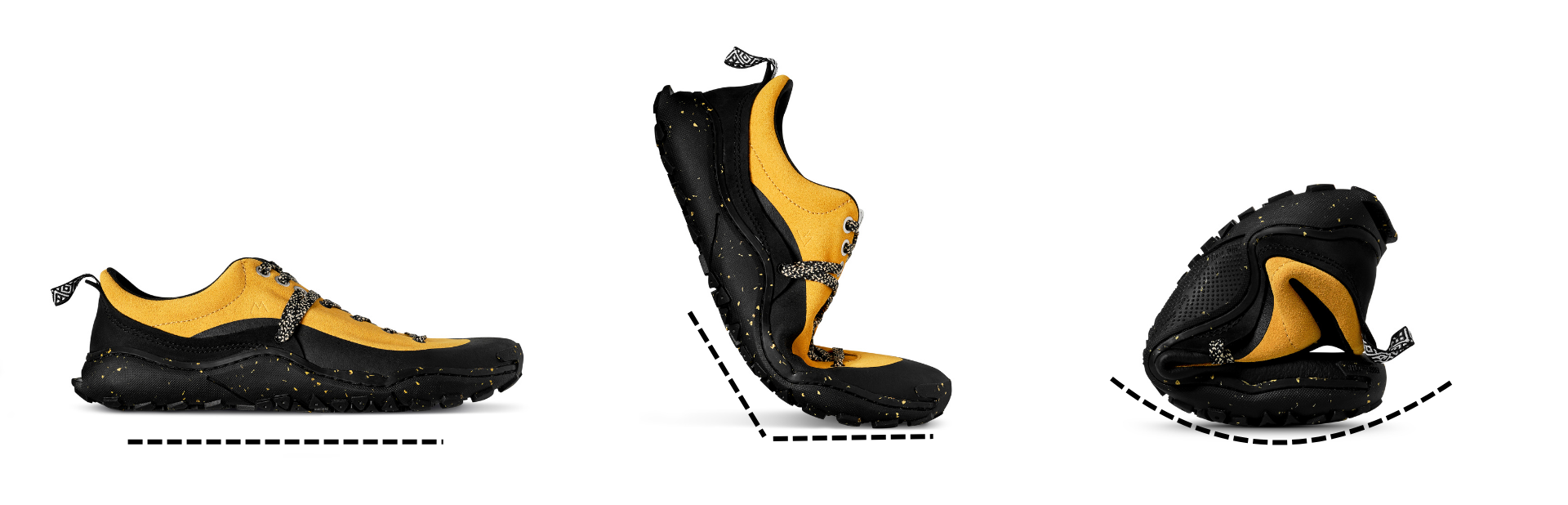 Wide toe for natural strength, thin sole for arch activation, zero drop for max stability
